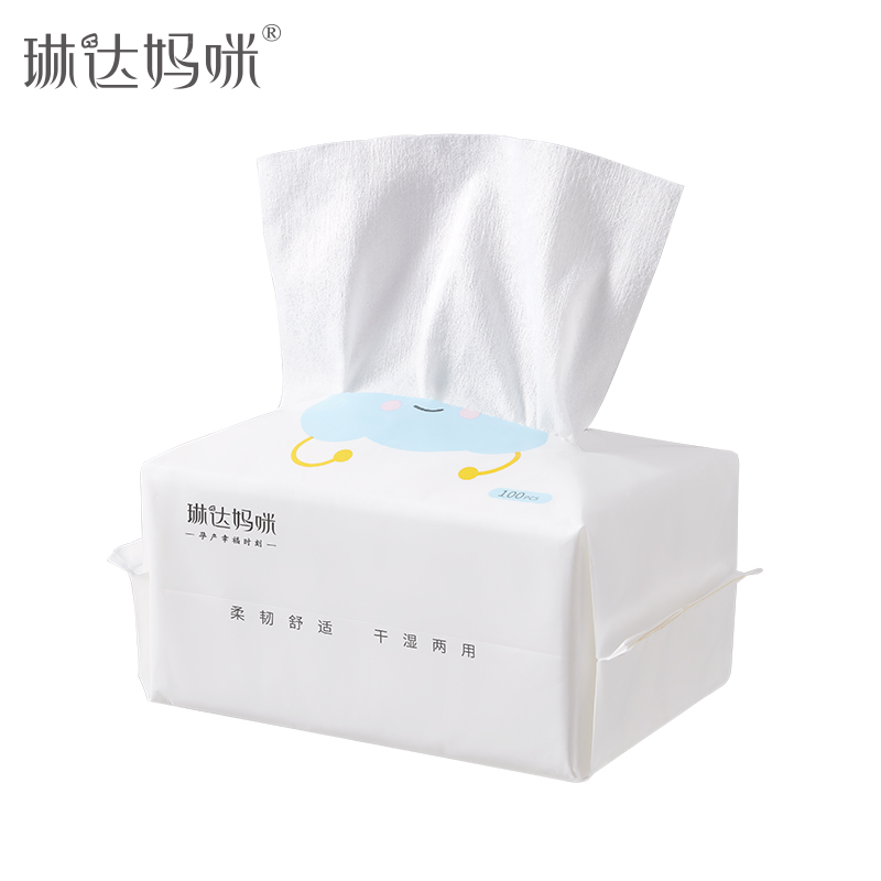【5包】琳达妈咪婴儿棉柔巾100抽5包干湿两用巾新生幼儿宝宝手口干湿纸巾