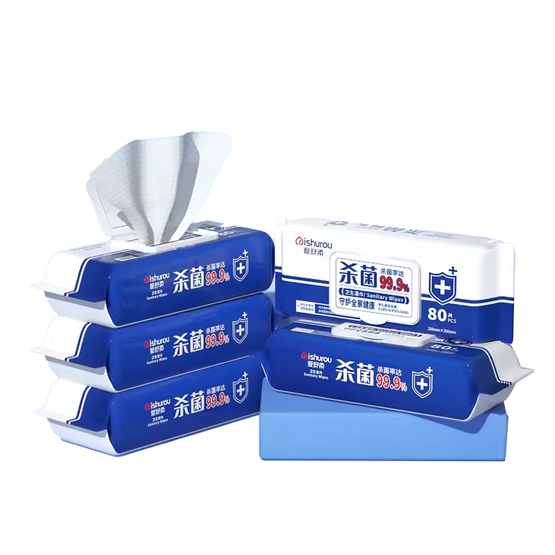 爱舒柔杀菌卫生湿巾抑菌抽取式带盖纯水过滤湿巾纸80片家庭实惠装20cm*20cm大尺寸