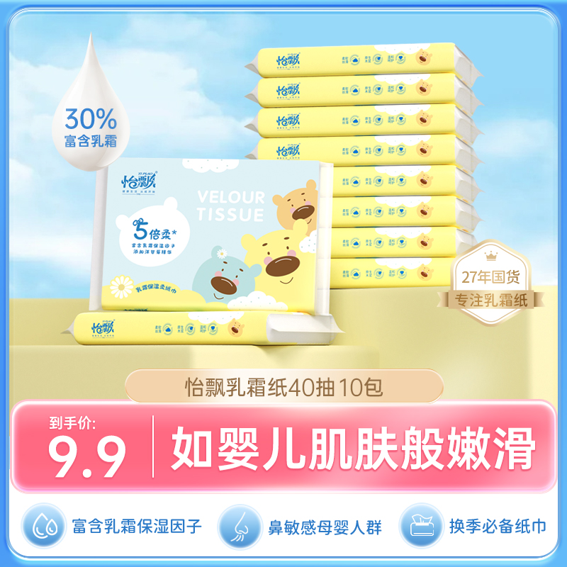 【品牌直供 可心柔同款】怡飘婴儿乳霜柔纸巾宝宝专用保湿云柔巾擦鼻涕纸40抽*10包