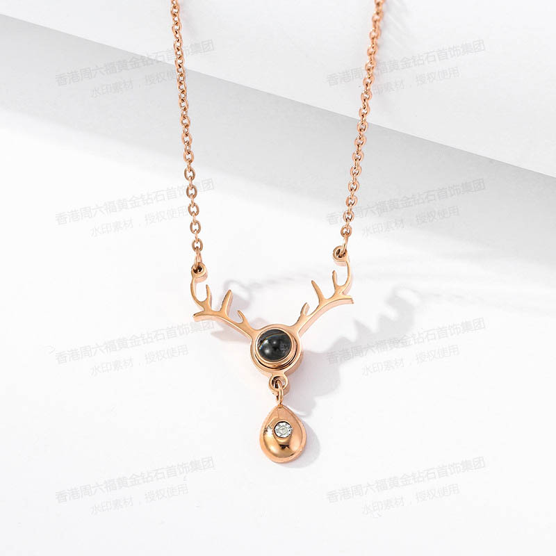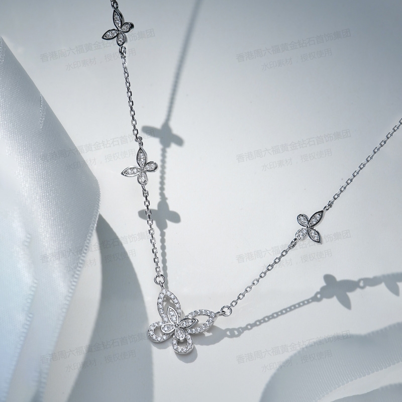 香港周六福铂金钻石蝴蝶项链(5只)(钛铂金、锆钻)