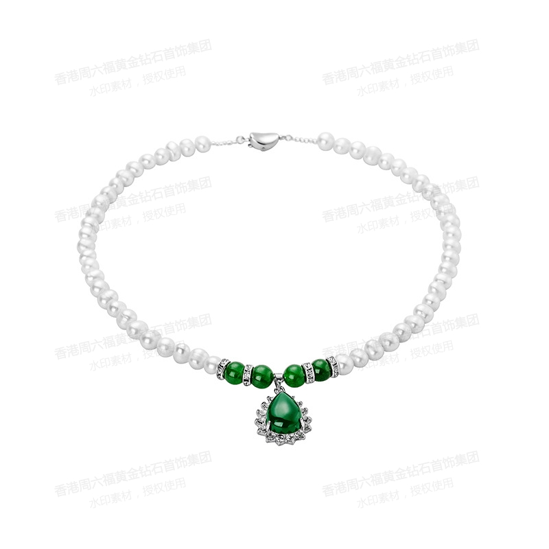 香港周六福18KGP-珍珠项链三件套玉髓吊坠