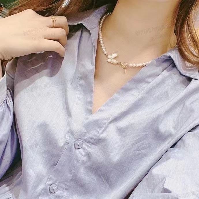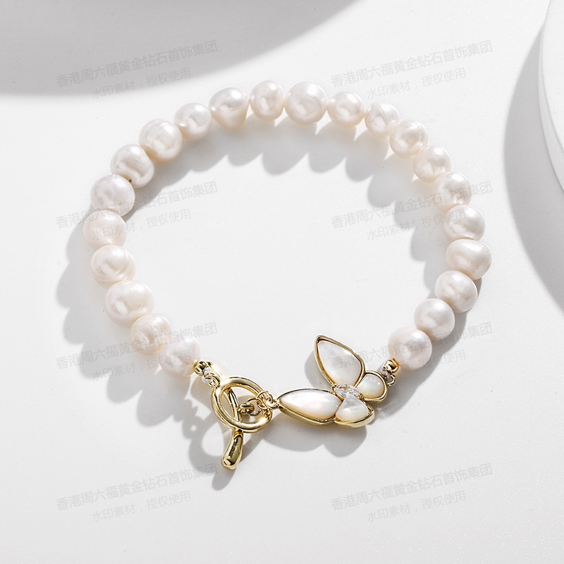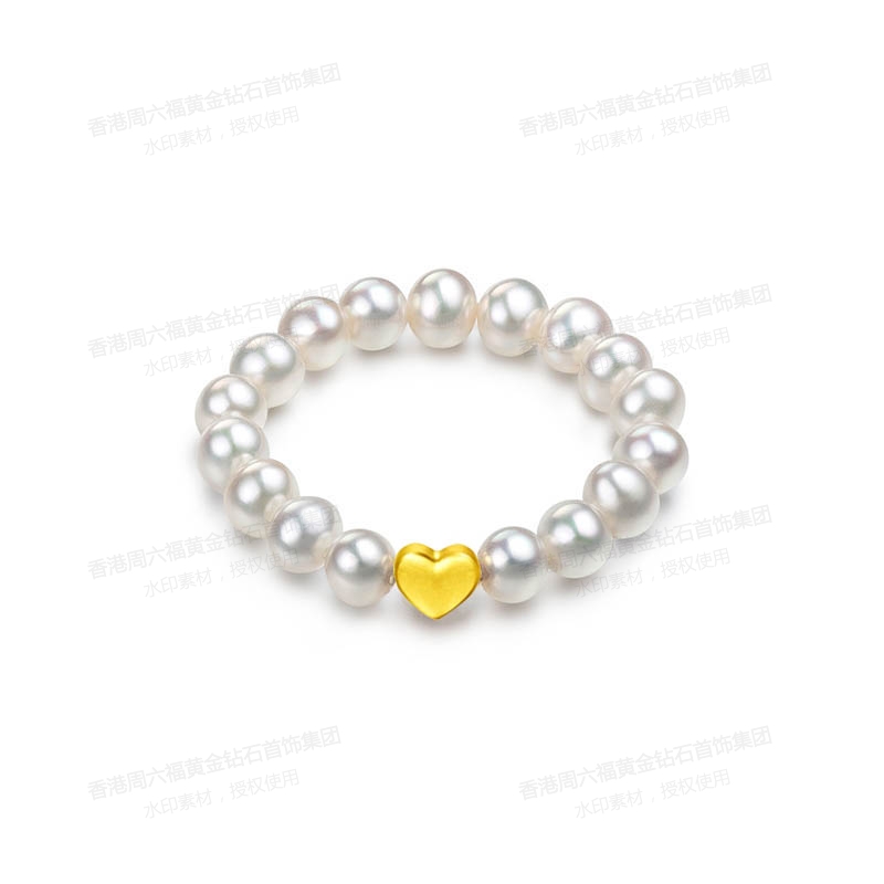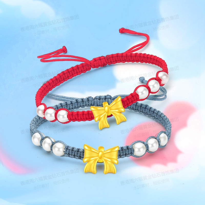香港周六福在逃公主黄金蝴蝶结珍珠手链