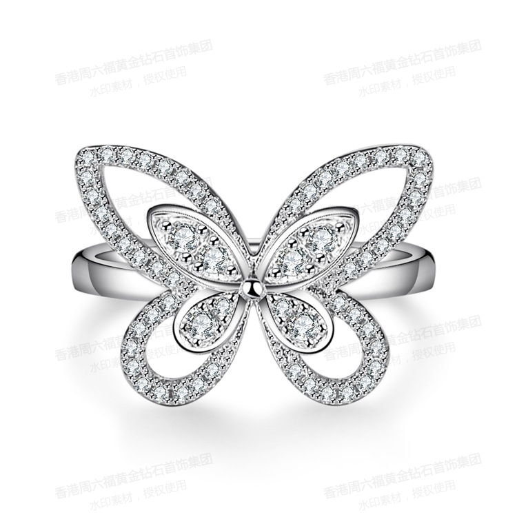 香港周六福铂金钻石蝴蝶戒指(钛铂金、锆钻)活口可调