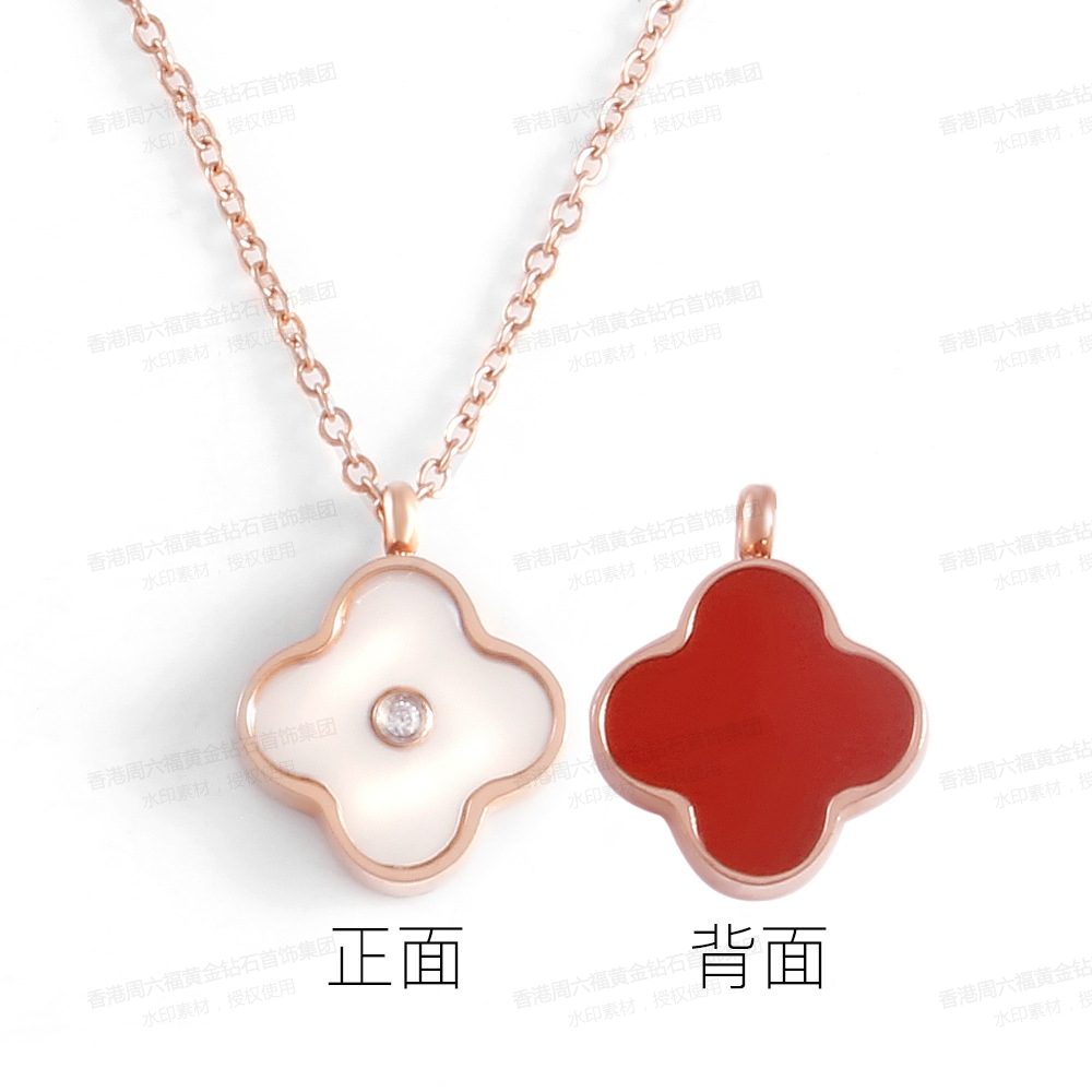香港周六福18KGP天然南非真钻-四叶草(双面白红)净重约2克