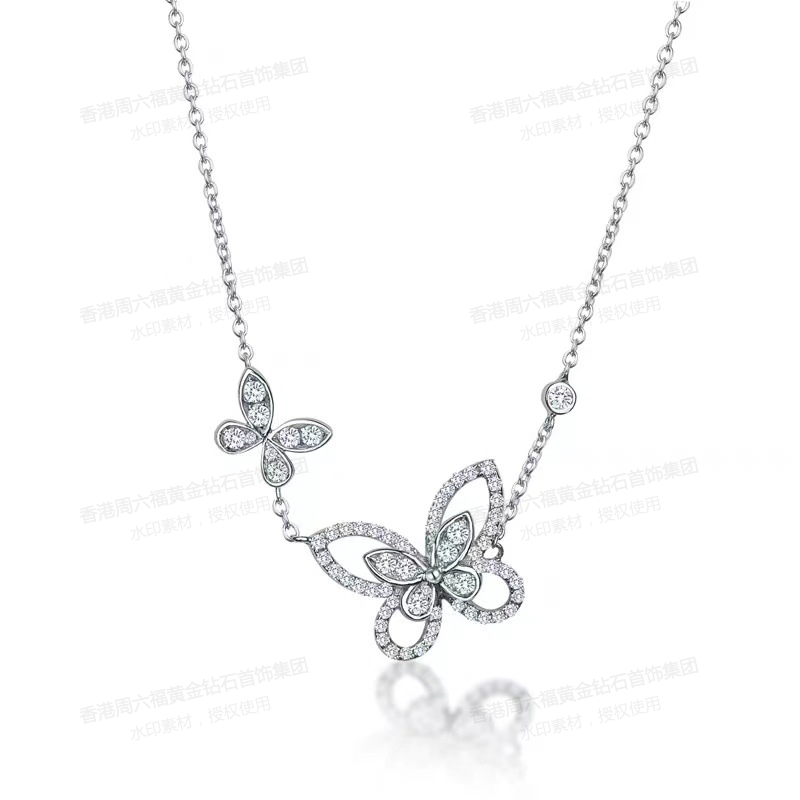 香港周六福铂金钻石蝴蝶项链(2只)(钛铂金、锆钻)