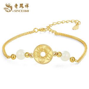 老凤祥S925银镶和田玉平安扣转运珠手链LFXLY0029
