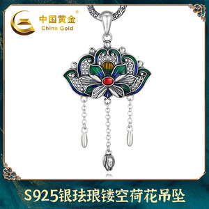 China Gold/中国黄金S925银珐琅镂空荷花吊坠ZGHJ231844