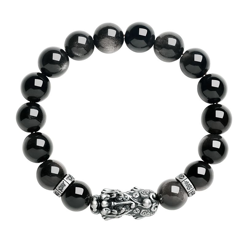 复古国潮六字箴言财运足银吞金兽 黑曜石 貔貅手