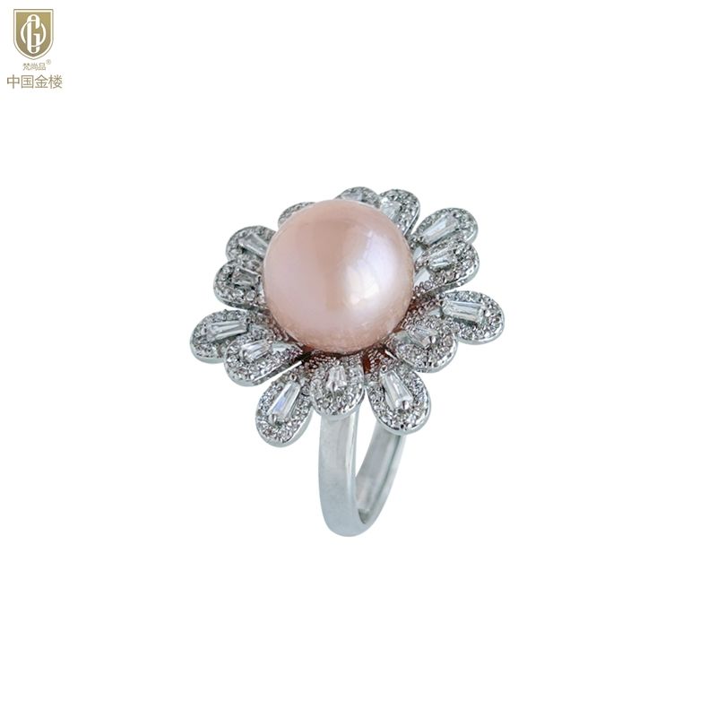 中国金楼梵尚品爱迪生极光紫珍珠璀璨花朵戒指送女友送礼好物礼盒装ZZX91495228(下单赠手机贴随机一个)
