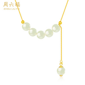 周六福18K金珠西窗影和田玉链坠ZLFY061632