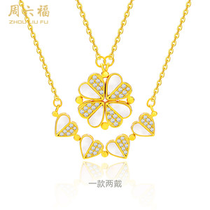 香港周六福天然南非真钻项链-四叶草圆白贝 净重约2克