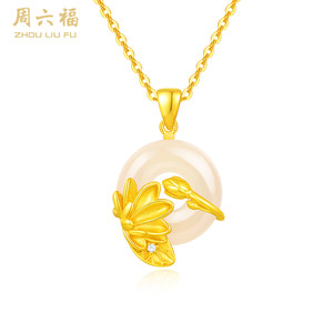 周六福S925银荷塘月色平安扣玉髓套链ZLFJ062296