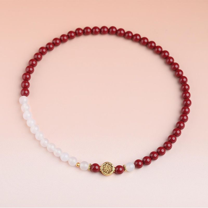 朱砂回纹珠紫金砂搭配蜜蜡圆形珠单圈手链
