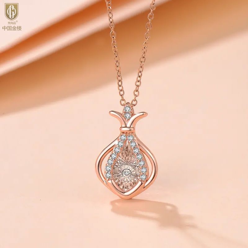 中国金楼18KGP镶钻南非真钻吊坠项链灵动花瓶KXZ56513089送礼好物送女友(下单赠手机贴随机一个)