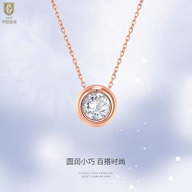 中国金楼梵尚品18KGP镶钻南非真钻吊坠项链灵动泡泡HKZLF06064送礼好物送女友(下单赠手机贴随机一个)