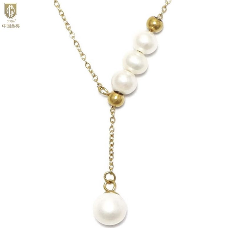 中国金楼梵尚品Y字天鹅颈天然珍珠转运珠项链ZZX16847897送礼好物送女友(下单赠手机贴随机一个)