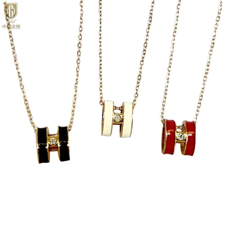 中国金楼梵尚品18KGP镶钻南非真钻H吊坠项链HKZLF06042送礼好物送女友(下单赠手机贴随机一个)