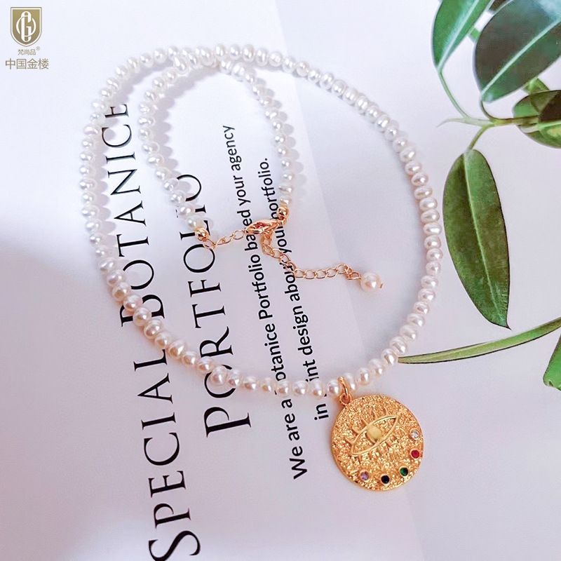 中国金楼梵尚品智慧之眼珍珠项链HKZLF080012送礼好物送女友(下单赠手机贴随机一个)