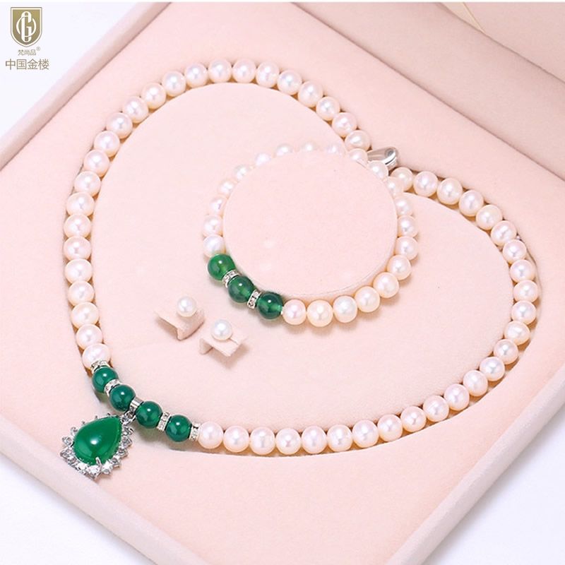 中国金楼梵尚品天然淡水珍珠三件套ZZX56121744送礼好物送女友(下单赠手机贴随机一个)
