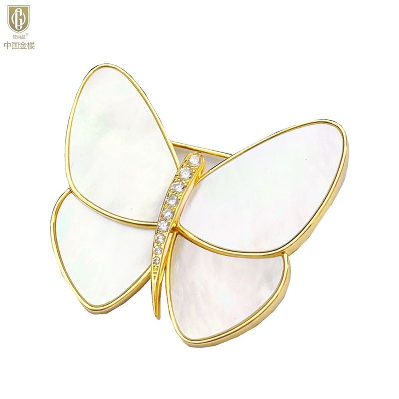 中国金楼梵尚品破茧成蝶白贝胸针HKZLF01014送礼好物送女友(下单赠手机贴随机一个)