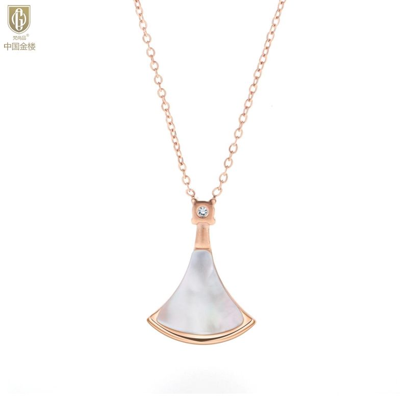 香港周六福黄金钻石首饰破茧成蝶白贝项链