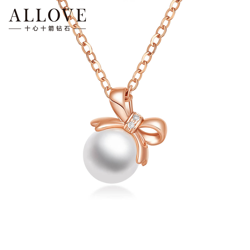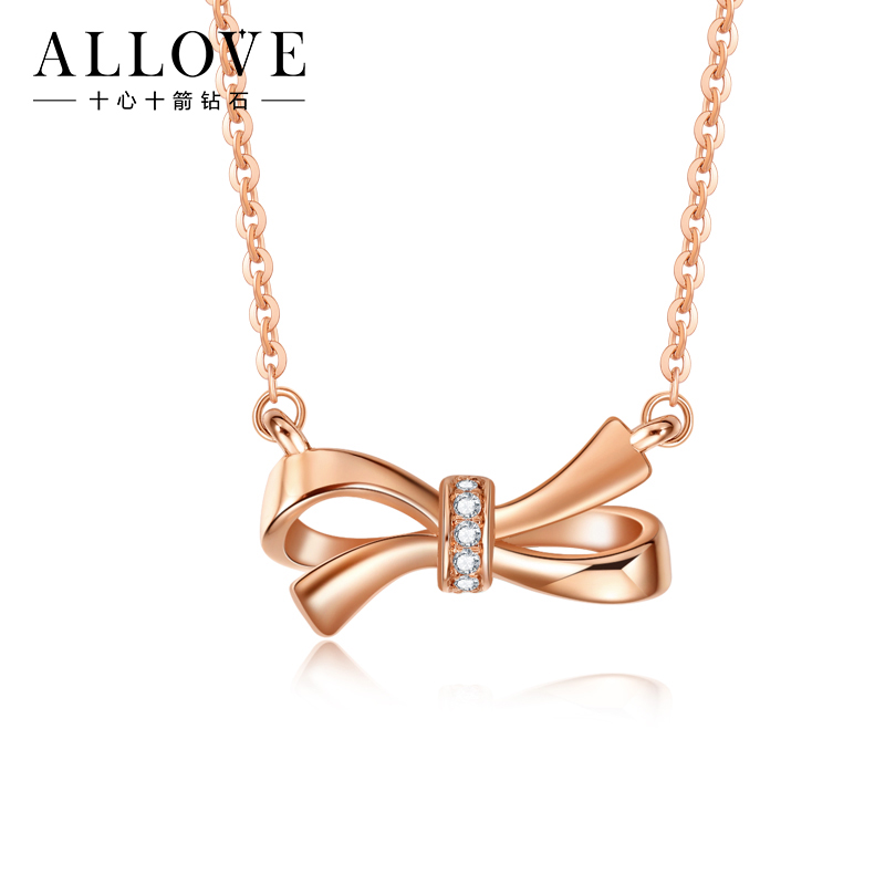 ALLOVE 18K金蝴蝶结钻石链坠GHD01057