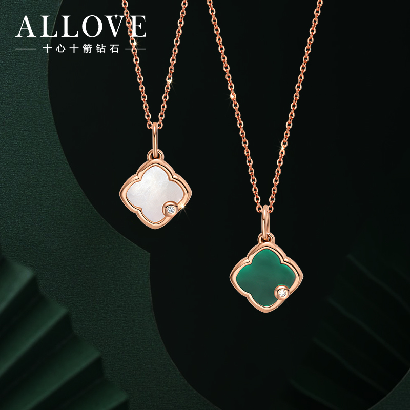ALLOVE 18K金珐琅钻石挂坠 (送银链)GHD00595
