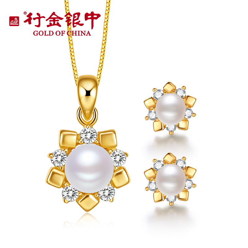 中银金行 S925银4.5-6mm时尚淡水珍珠吊坠/耳饰套装DSTS0003
