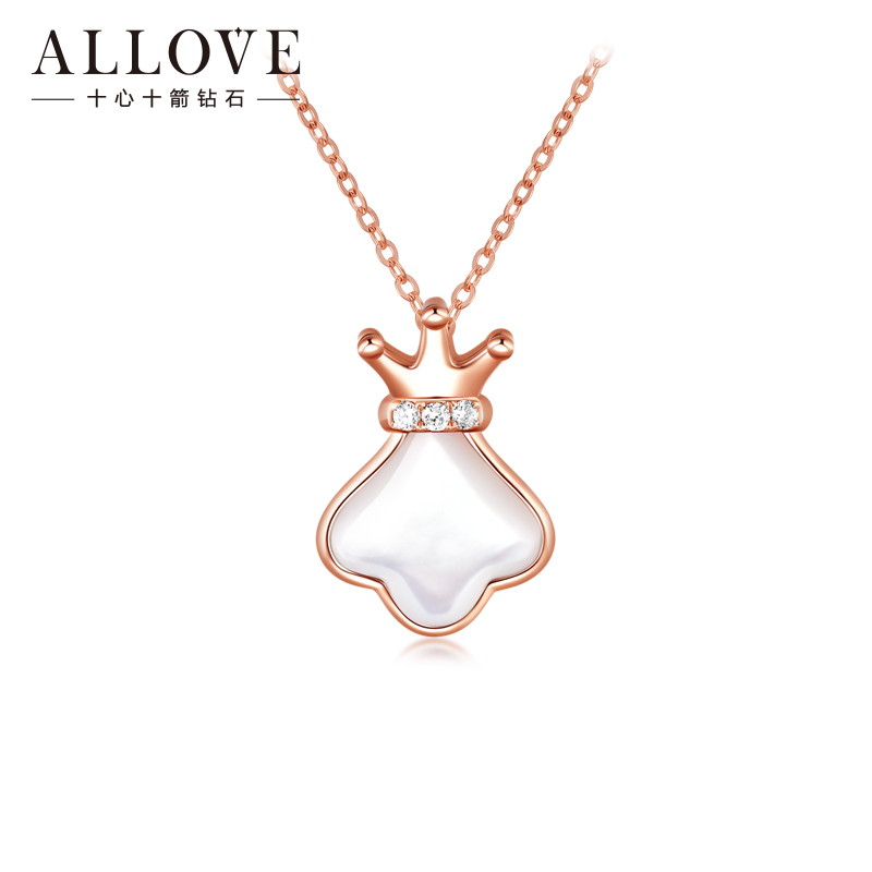 ALLOVE 18K金皇冠白贝钻石挂坠(送银链)GHD01285