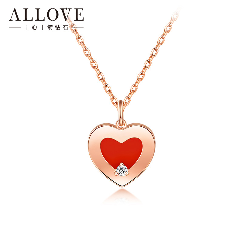 ALLOVE 18K金红玛瑙钻石挂坠 (送银链)FP04604