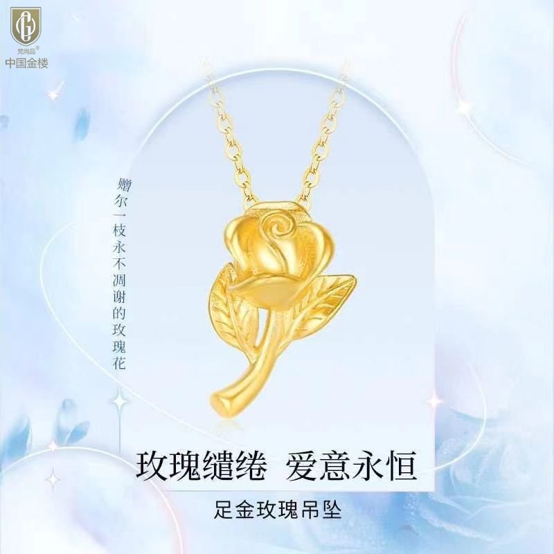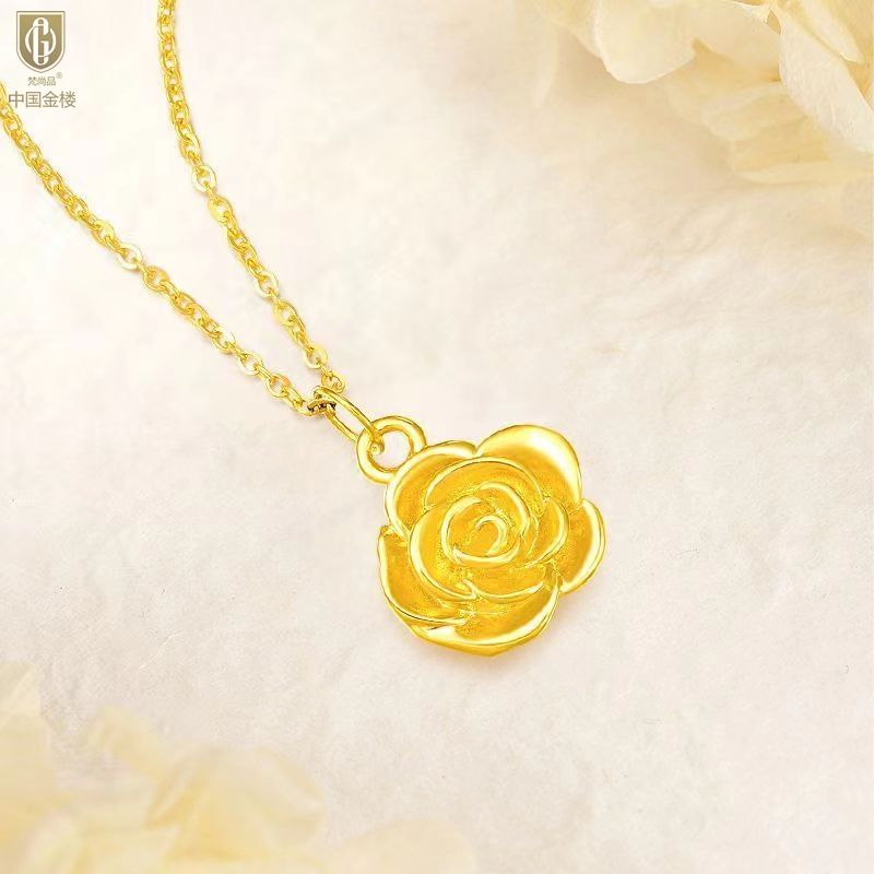中国金楼梵尚品5D足金玫瑰花吊坠送礼好物礼盒装送女友JJJ58588823(下单赠手机贴随机一个)