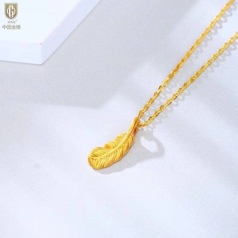 中国金楼梵尚品5D足金吊坠羽毛送礼好物礼盒装送女友JJJ42159632(下单赠手机贴随机一个)