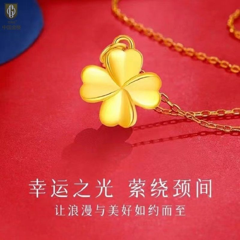 中国金楼梵尚品5D足金吊坠四叶草送礼好物礼盒装送女友JJJ19511157(下单赠手机贴随机一个)
