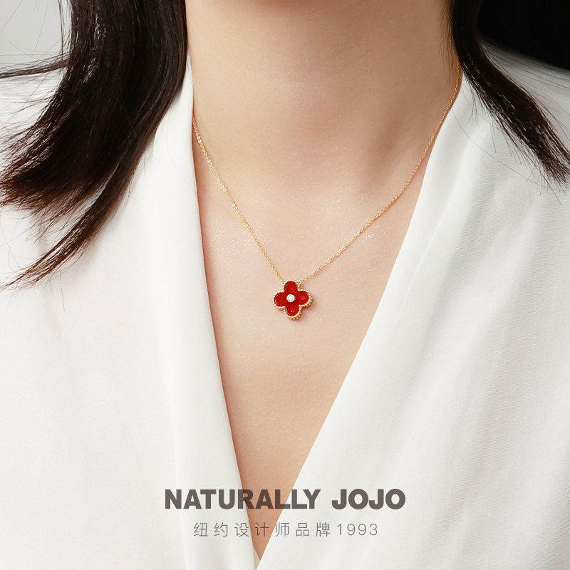 NATURALLY JOJO红色国风四叶草耳钉项链女18k轻奢小众设计感高级锁骨链2023新款爆款耳环饰品