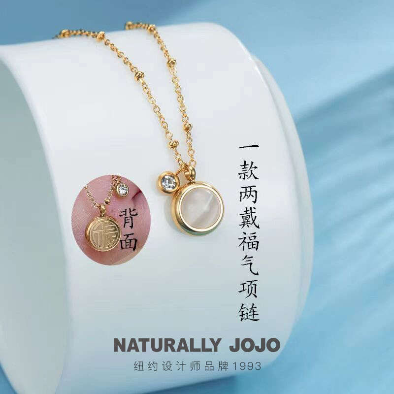 NATURALLY JOJO 轻奢潮流新品小众设计一种福气猫眼石钛钢饰品项链