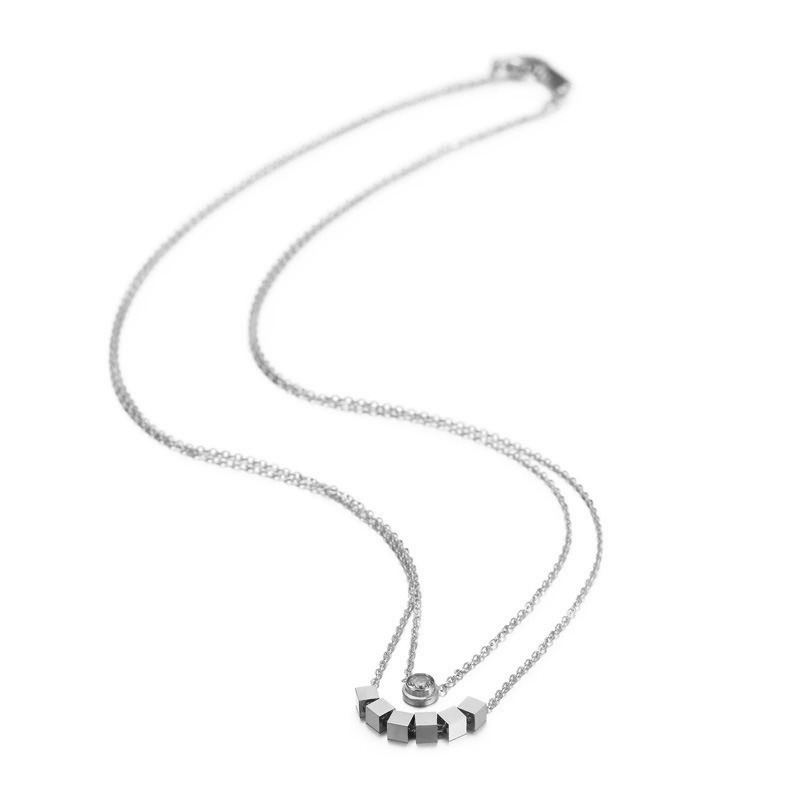NATURALLY JOJO 女士新款时尚闪耀锆石圆柱钛钢项链吊坠礼物女生饰品