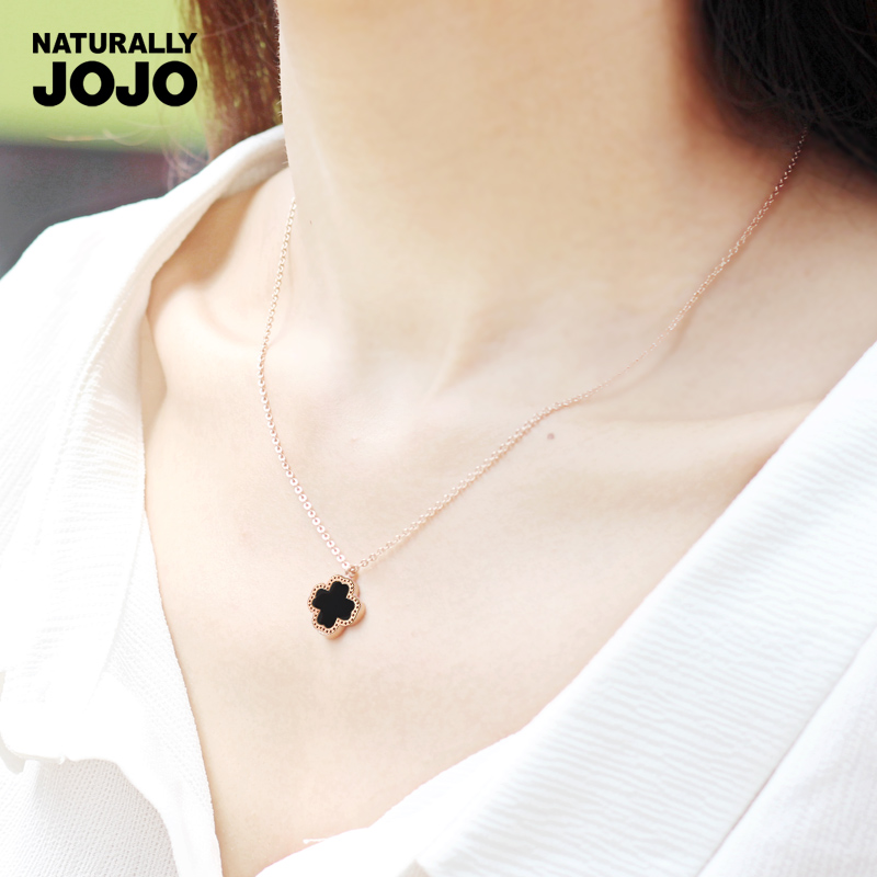 NATURALLY JOJO女士新款清新森女系黑白双面幸运四叶草项链女生吊坠饰品