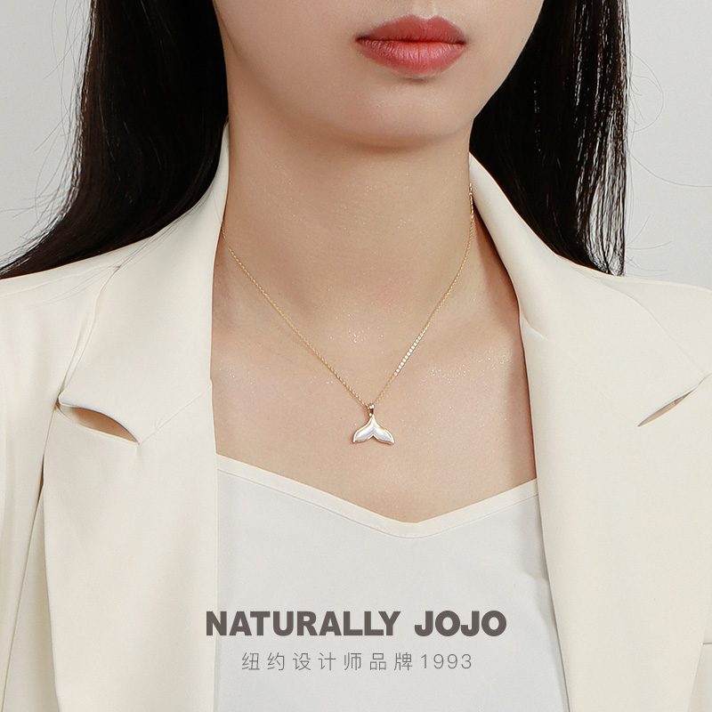 NATURALLY JOJO女士纯银贝壳鱼尾项链女生轻奢小众高级设计感配饰锁骨链2023新款爆款饰品