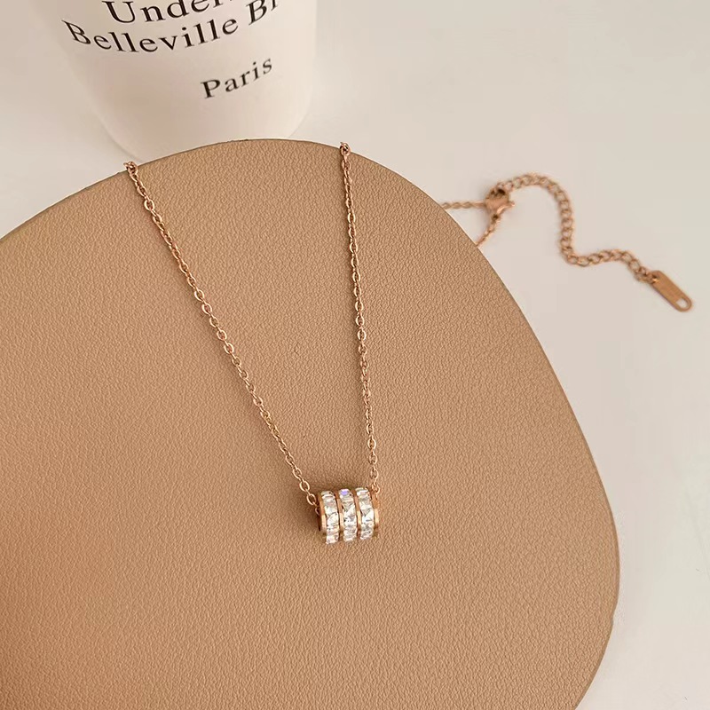 NATURALLY JOJO14K满钻小蛮腰项链女生网红轻奢小众钛钢锁骨链简约气质彩金吊坠饰品礼物