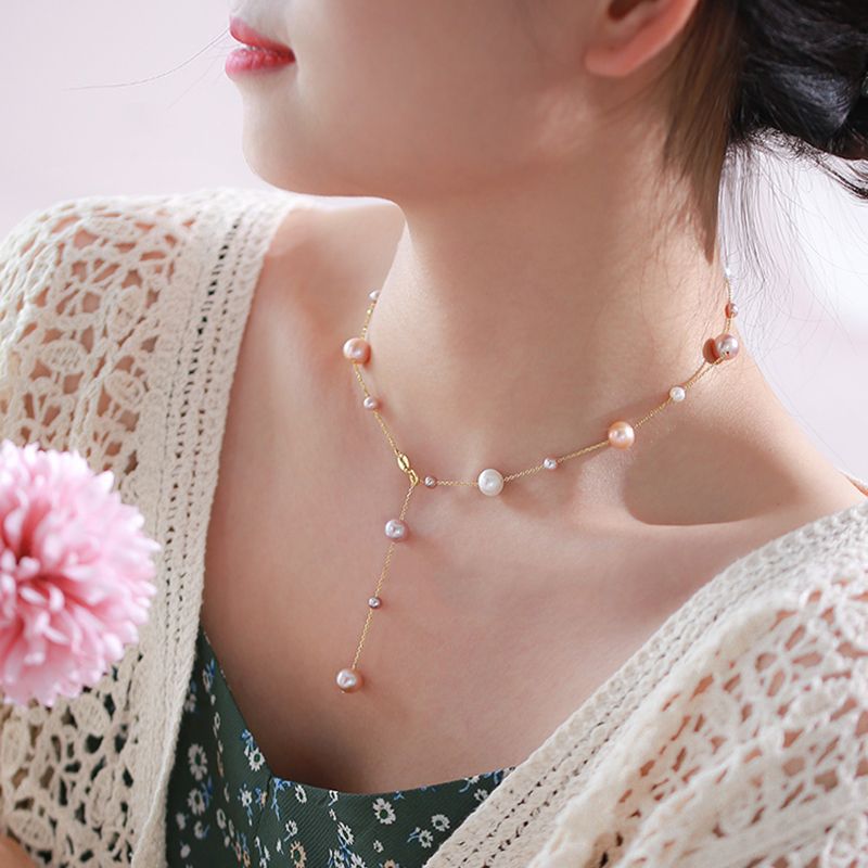 NATURALLY JOJO女士炫彩巴洛克珍珠项链女简约法式轻奢小众设计高级感短款锁骨毛衣链新款