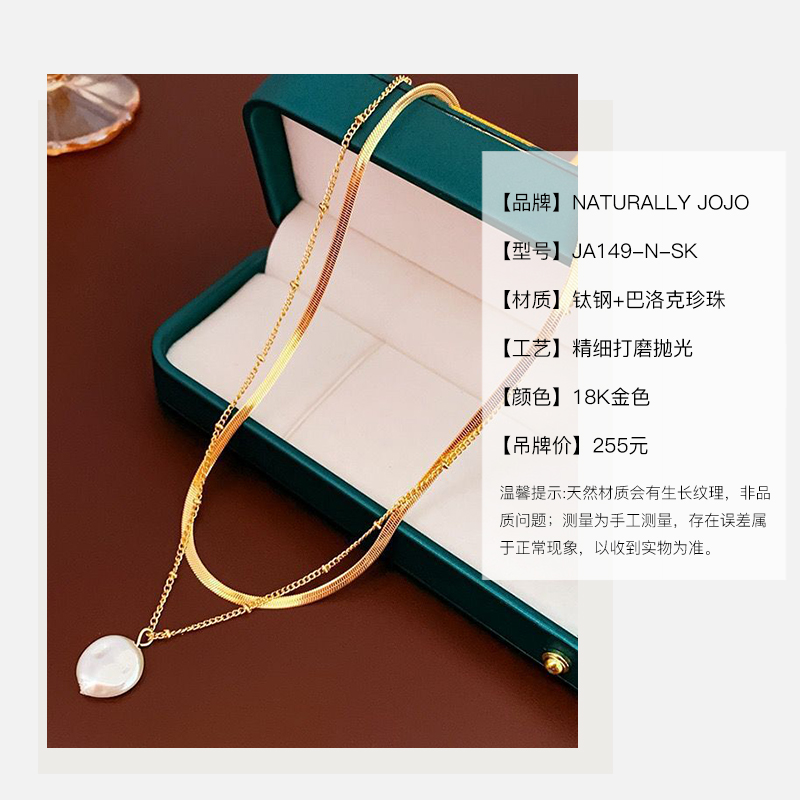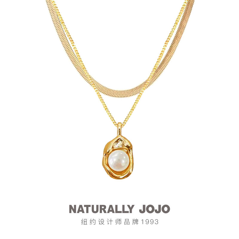 NATURALLY JOJO女士新款双层叠戴巴洛克珍珠蛇骨项链女轻奢小众设计高级感百搭短款毛衣链