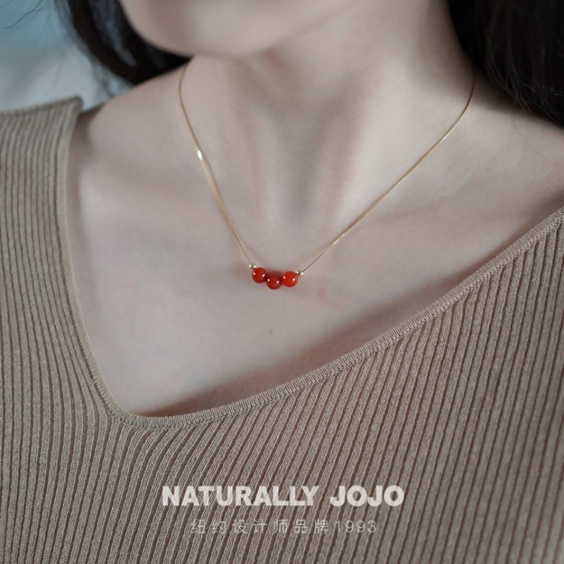 NATURALLY JOJO女士纯银红玛瑙金珠项链女轻奢小众设计高级感百搭锁骨链2024新款爆款饰品