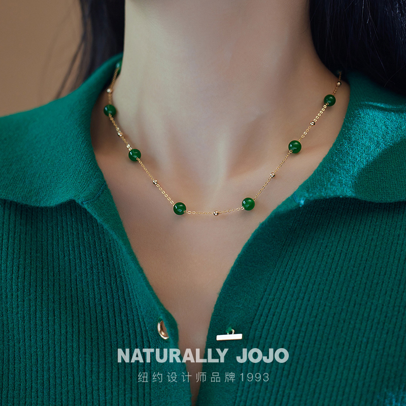 NATURALLY JOJO女士新中式简约新款绿玉髓锁骨项链轻奢气质个性汉服配饰百搭饰品生日礼物