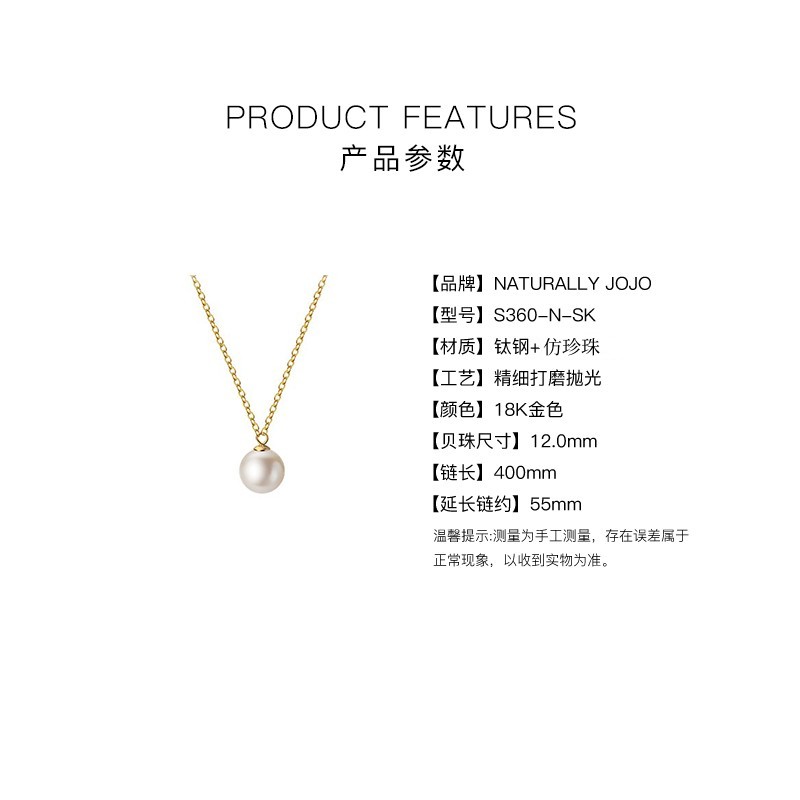 NATURALLY JOJO女士新款简约正圆奶白色仿珍珠项链饰品锁骨链生日礼物