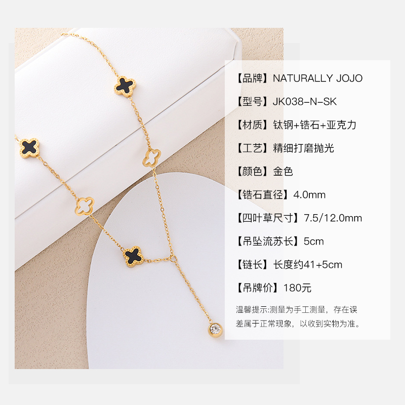 NATURALLY JOJO女士镀18K金幸运四叶草项链女钛钢轻奢小众设计网红锁骨链2025新款爆款饰品