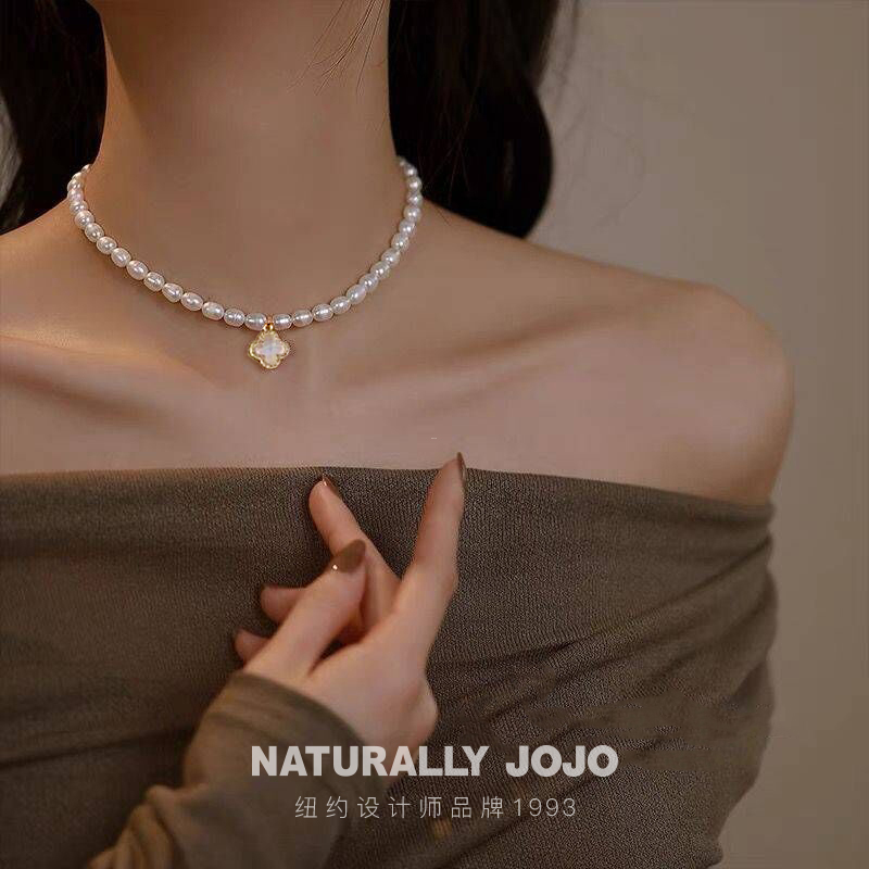 NATURALLY JOJO女士新款小众天然淡水珍珠花朵项链饰品锁骨链首饰女生生日礼物