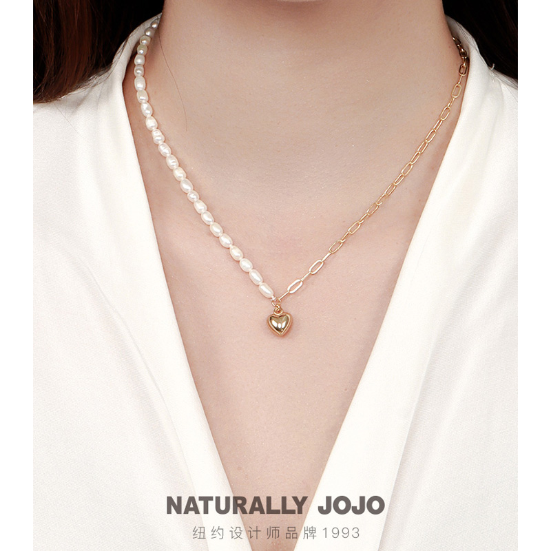 NATURALLY JOJO女士爱心珍珠AB款钛钢项链女生时尚气质小众高级感心形吊坠锁骨链2023新款