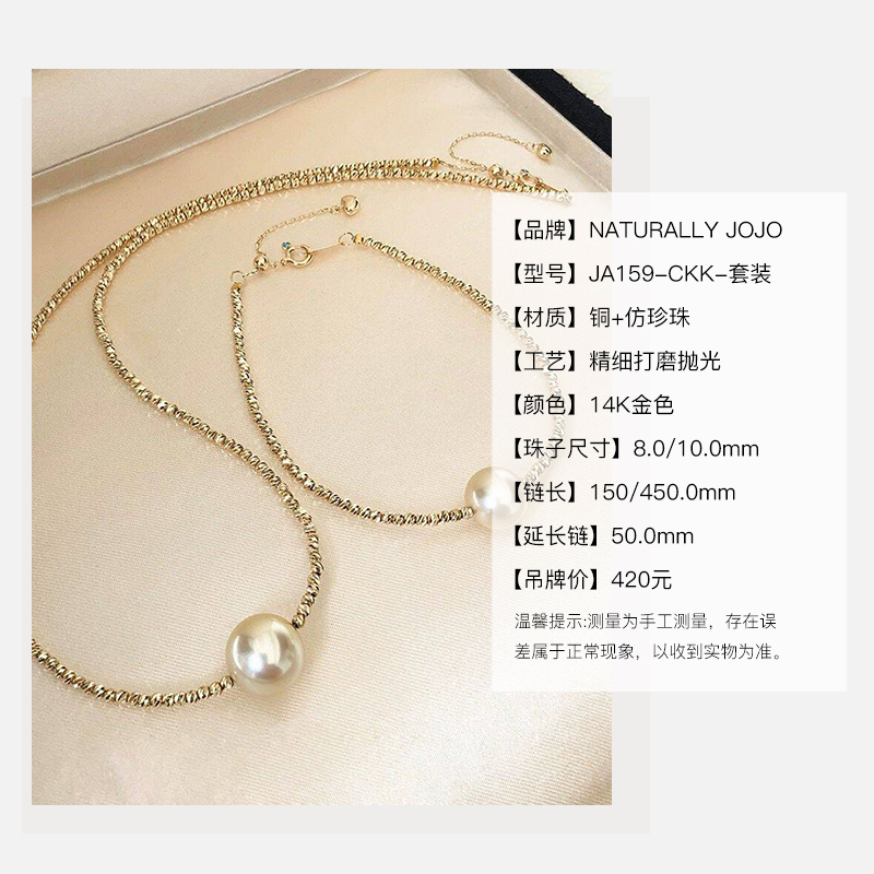 NATURALLY JOJO女士新款小众设计感气质简约仿羽黄金珍珠套装项链手链饰品女生生日礼物