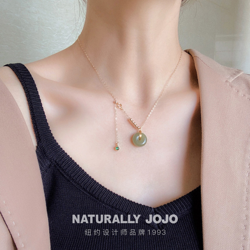 NATURALLY JOJO 女士小众设计ins冷淡风和田玉珠平安扣锁骨链新款项链首饰女生饰品