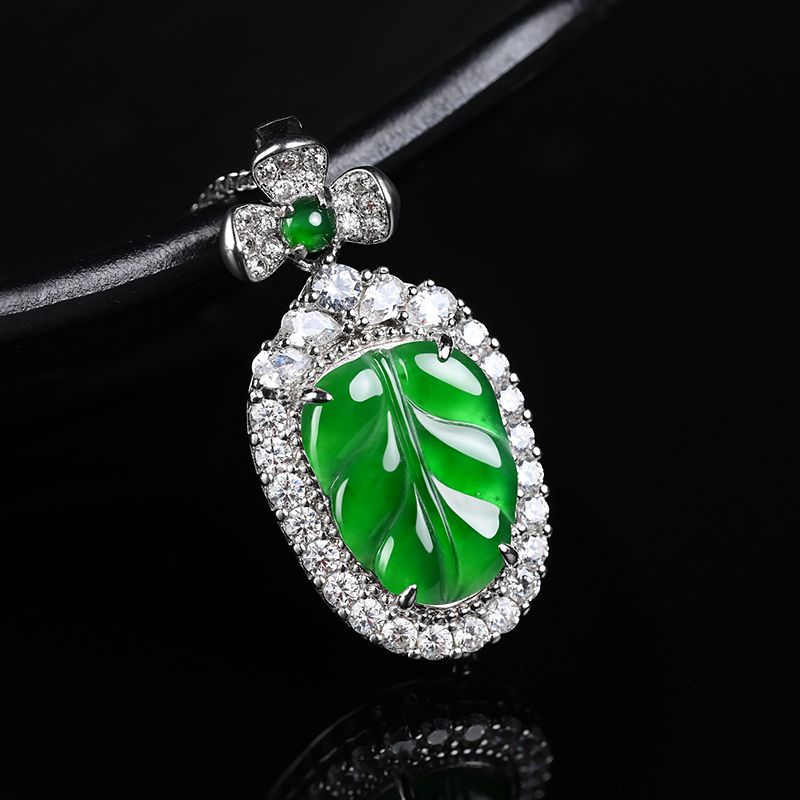 紫慕璃 金枝玉叶 阳绿翡翠叶子吊坠 冰种 项链 女款